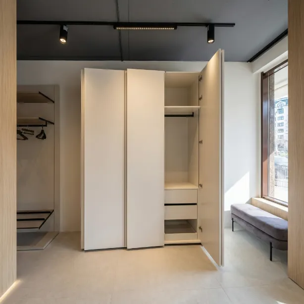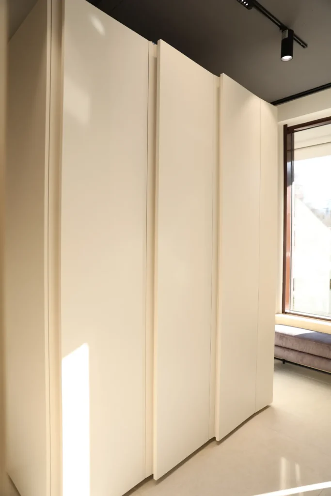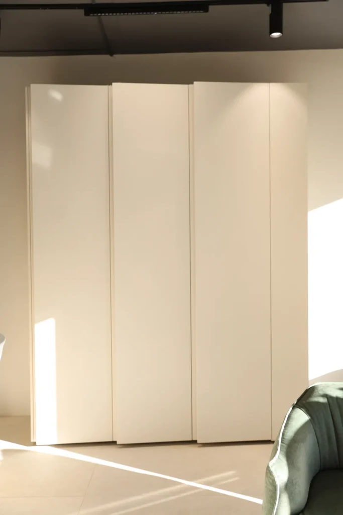 Dulap modern, cu un design simplu și elegant, în nuanță caldă de bej.