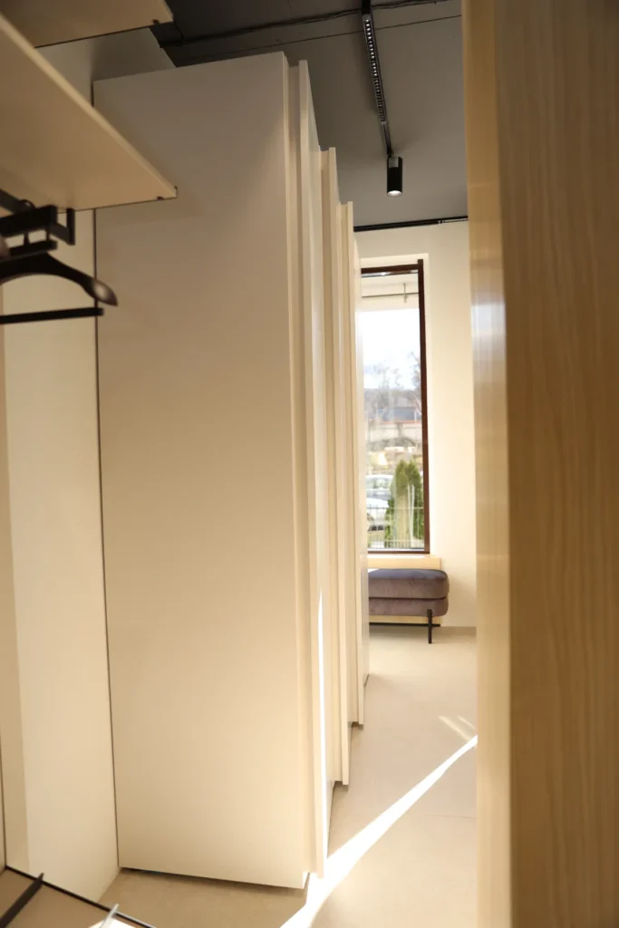 Are fronturi curate, fără mânere vizibile, ceea ce îi oferă un aspect minimalist și ordonat. Se potrivește perfect în interioare moderne, aducând lumină și senzație de spațiu.